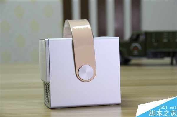 其外观采用银白色金属外壳搭配同色系滑盖设计,手提带精选头层牛皮制成。可投影720P分辨率16:9视频,投放画面36-196英寸,最佳投放距离(2-3米)。
